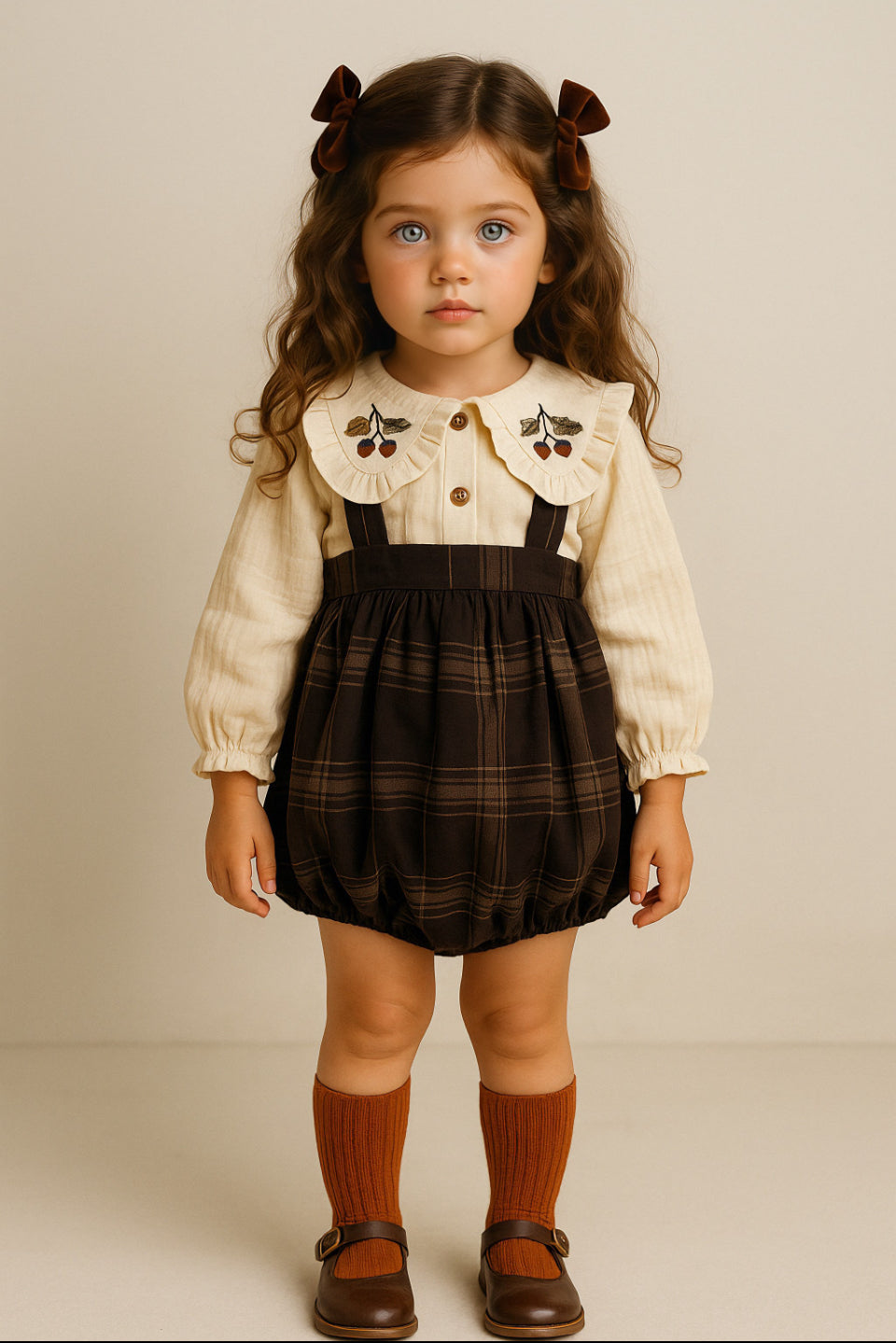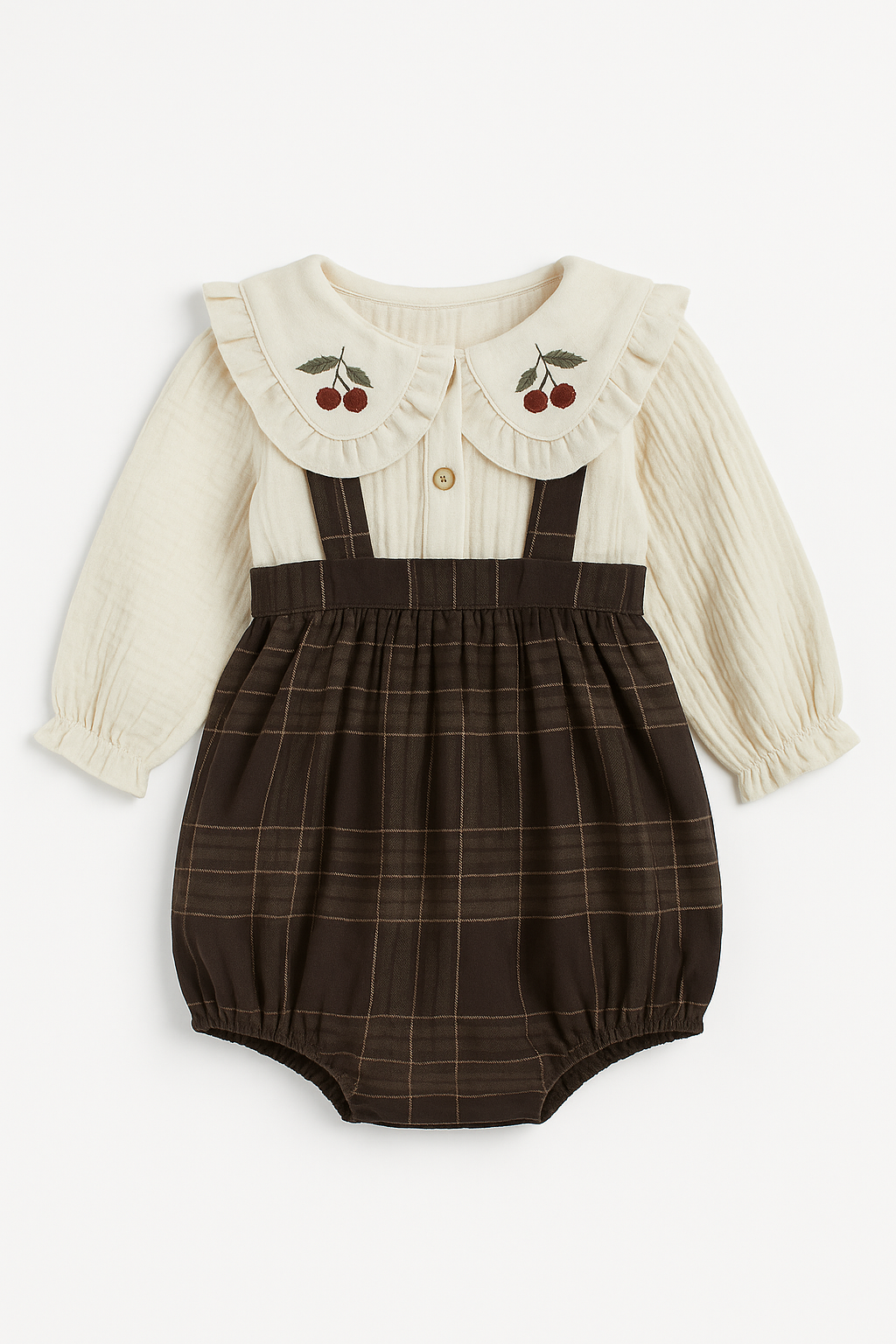 - Romper con Bretelline in tessuto scozzese marrone