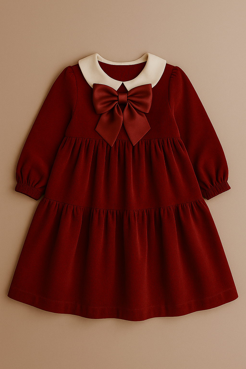 Il vestitino Rosso Fiaba è un capo raffinato e senza tempo, pensato per le occasioni speciali e per chi ama lo stile classico dal gusto delicato. Realizzato in morbido velluto burgundy, presenta un ampio corpetto arricciato e una gonna a balze che dona movimento e leggerezza.
